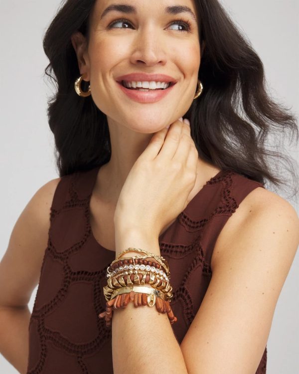 Add this genuine walnut-inspired wood with cubic zirconia accents bracelet to your stack for an organic & glamorous effect. Pair with other matching wood jewelry and Chico’s Bracelet Bar.