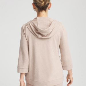 - Relaxed-fit hooded jacket with 3/4 sleeves.