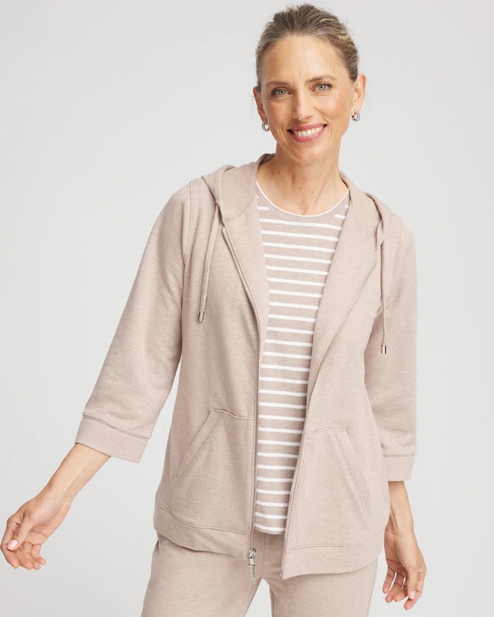 Made with soft-stretch cotton-blend French Terry, this full-zip jacket features a drawstring adjustable hood and is embroidered with caviar beading on the cuffs and kangaroo pockets. Match with French Terry Cropped Pants—or mix with other Zenergy® tops and pants.