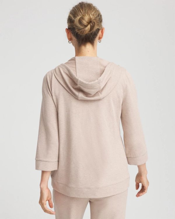 - Relaxed-fit hooded jacket with 3/4 sleeves.