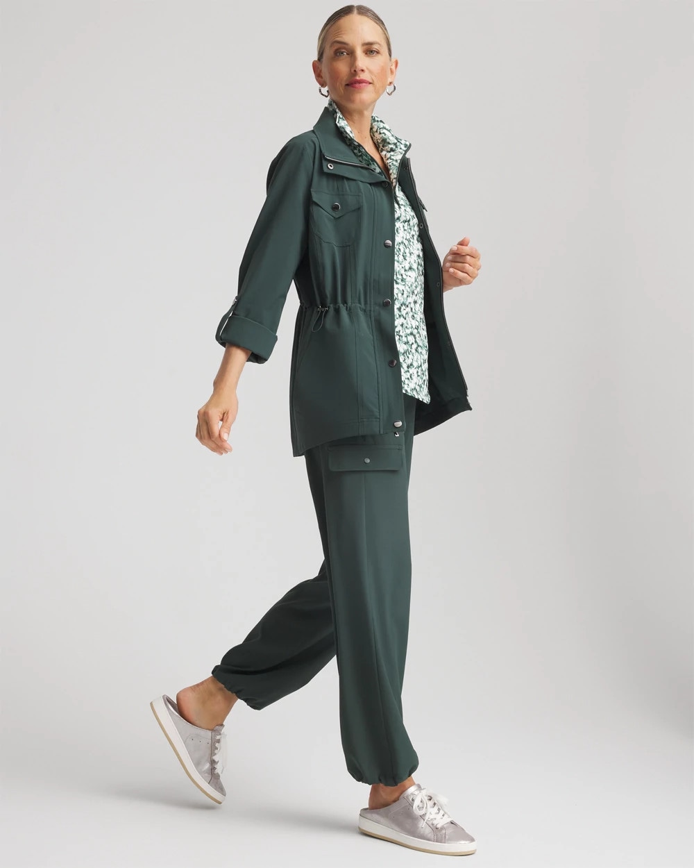 - Classic-fit bungee-cinch-hem pants with pockets.