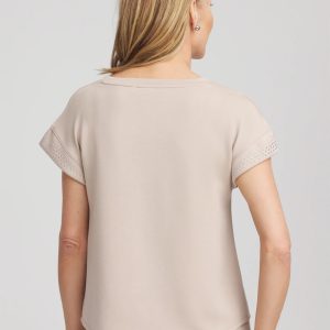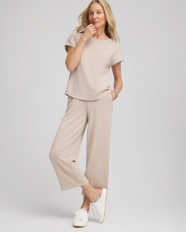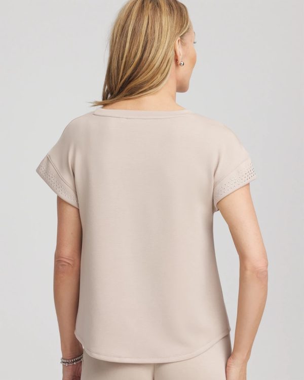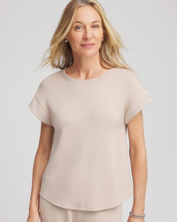 Because adding Chico’s ‘softest ever top’ to your wardrobe is a must, include our Zenergy® Scuba Embellished Short-Sleeve Top. Showcasing sleek heat-set studs on the cuffs for an elevated touch to loungewear—in the season’s luxurious new hues.