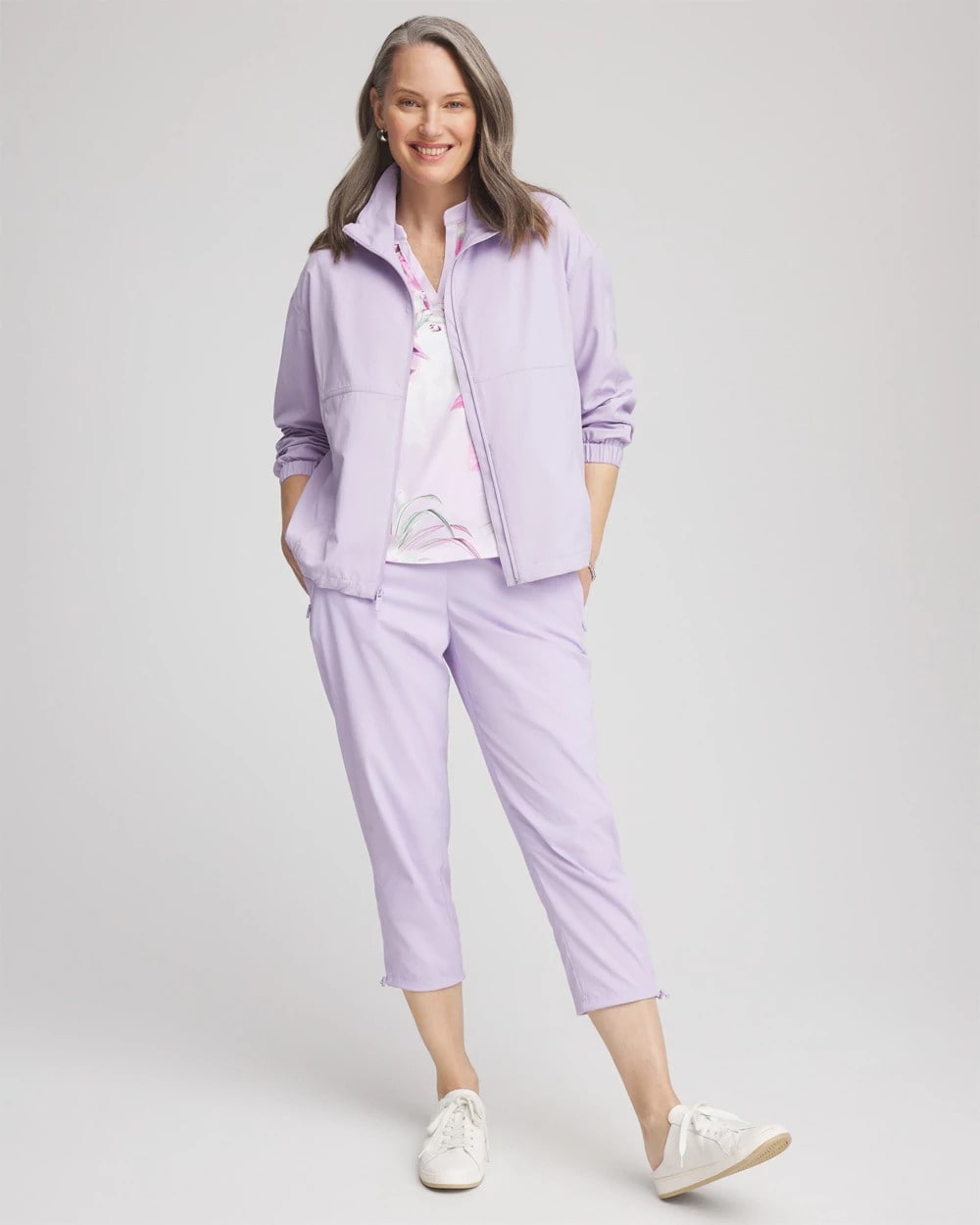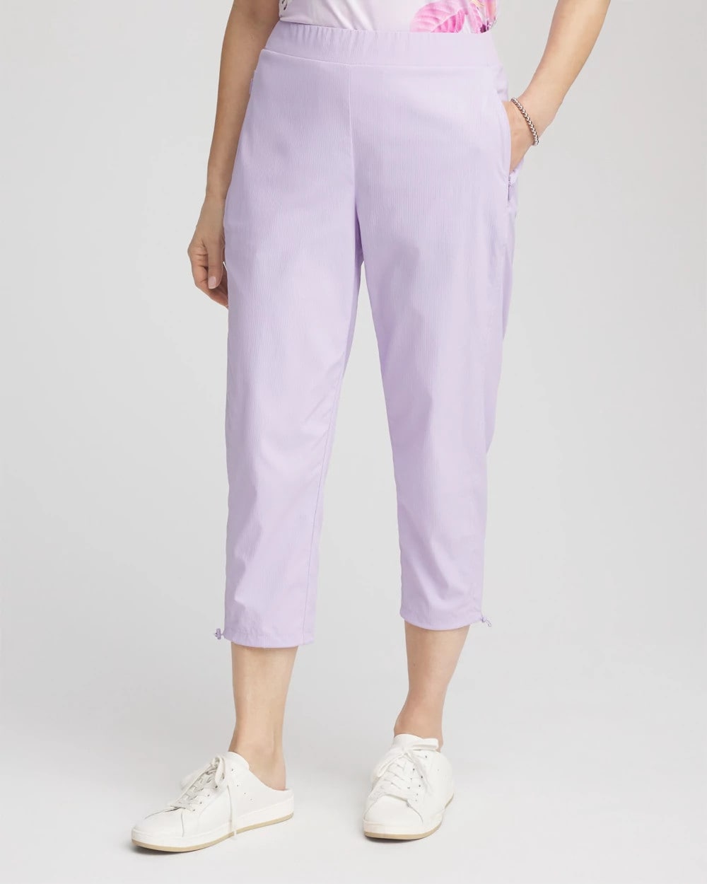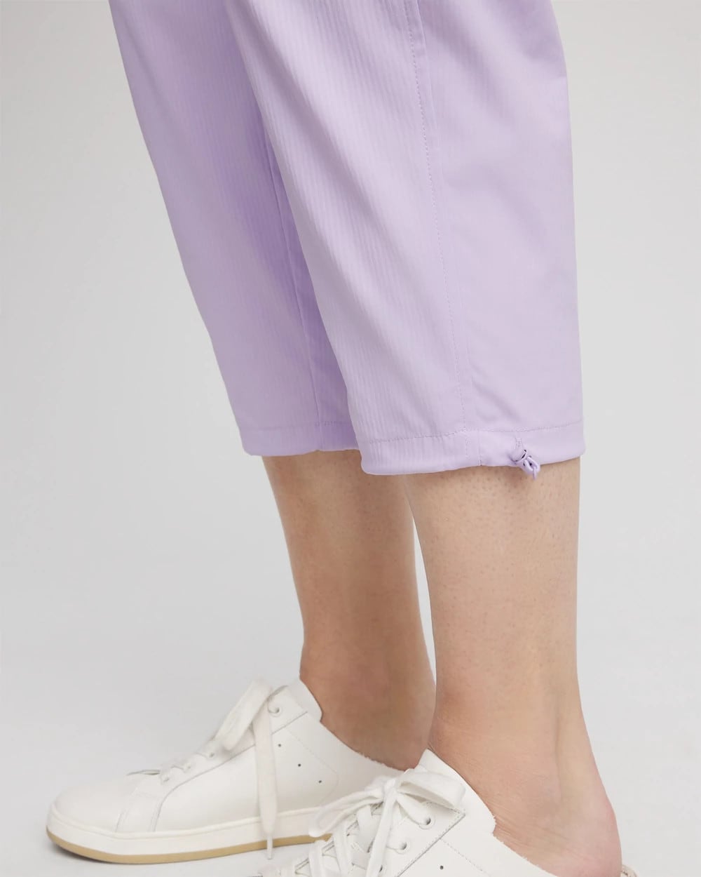 Lightweight Zenergy® UPF Neema Bungee-Hem Cropped Pants showcasing stunning shadow stripes. Cut from wrinkle-resistant, rapid-dry, and moisture-wicking Neema fabric. Rated UPF 50+ to block both UVA and UVB rays, these hi-tech and comfortable cropped pants feature a pull-on elastic waist and bungees at the hem for a flexible fit and styling options. Perfect for your active lifestyle, pair with Zenergy® tees and jackets for a matching look and elevated feel.