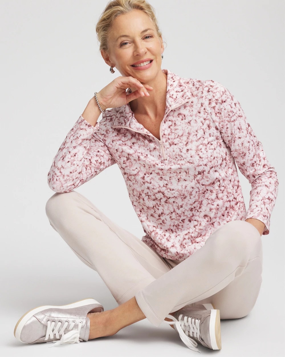 This iteration of our bestselling Zenergy® UPF Zip-Front Mockneck Pullover Top features a flattering wildflower print. Cut from innovative high-tech fabric designed to shield you from the rays of the sun with built-in UPF 50+. Soft-stretch, wrinkle-resistant, and quick-dry pullover top with long sleeves, and a shirttail hem. Pair with Zenergy® pants and tees.