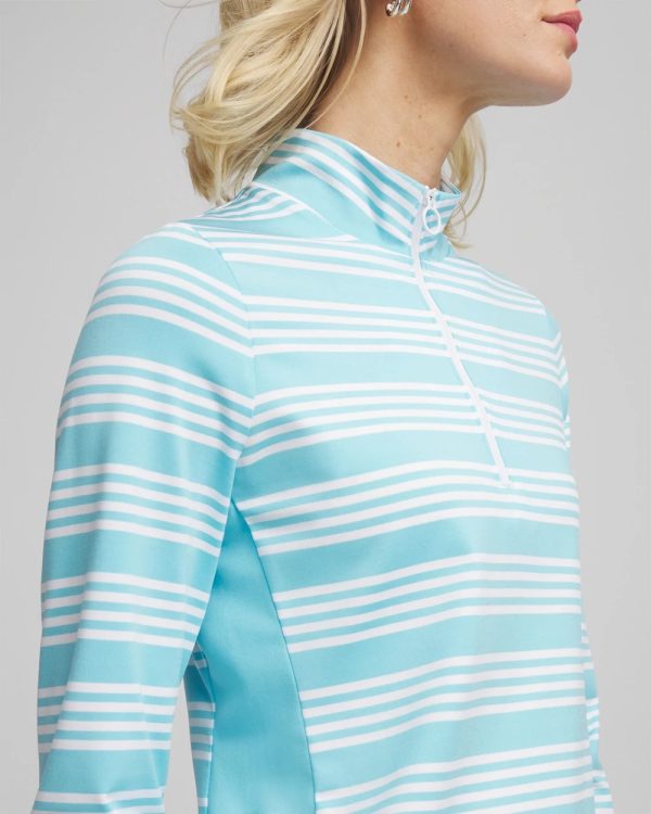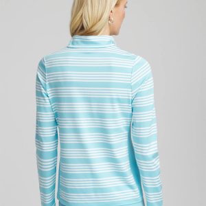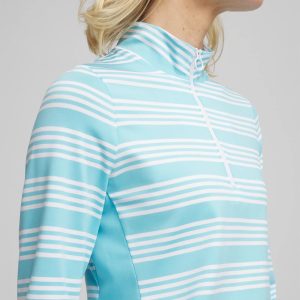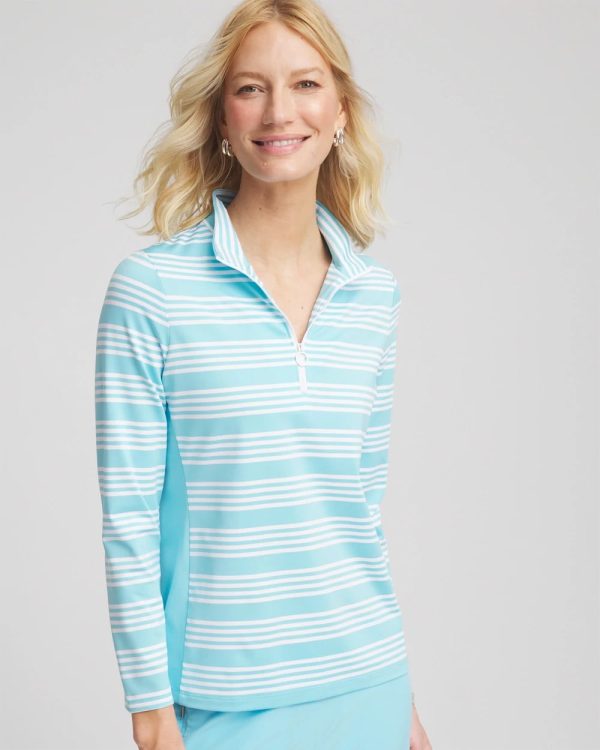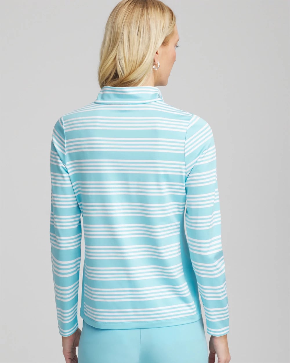 Stay up on your golf game throughout the seasons in our Zenergy® UPF Stripe Long Sleeve Top. The half placket zipper with an O-ring pull on the mock neck helps you stay cool as the game heats up, and the UPF fabric helps prevent against the sun’s harmful rays. Design with a solid contrast side panel, this top pairs well with our Zenergy® skorts and pants.